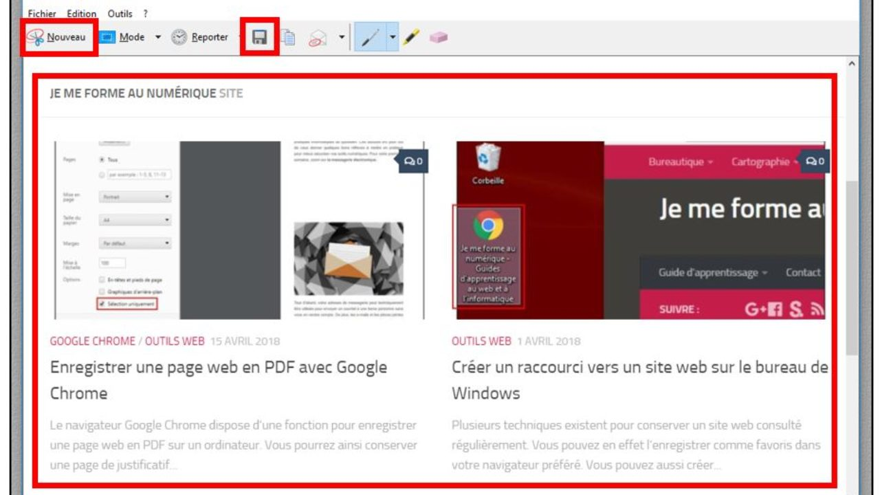 Enregistrez votre capture d'écran en cliquant sur la disquette, une fenêtre apparait, placez votre capture dans votre dossier créé à cet effet.